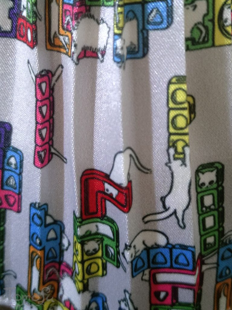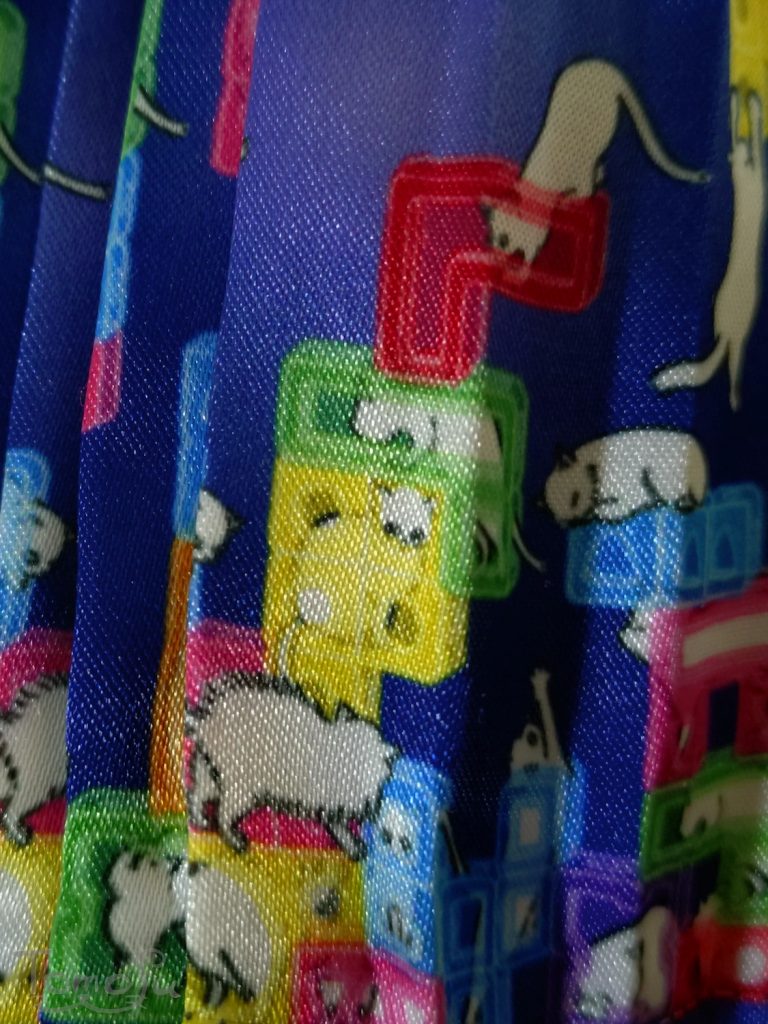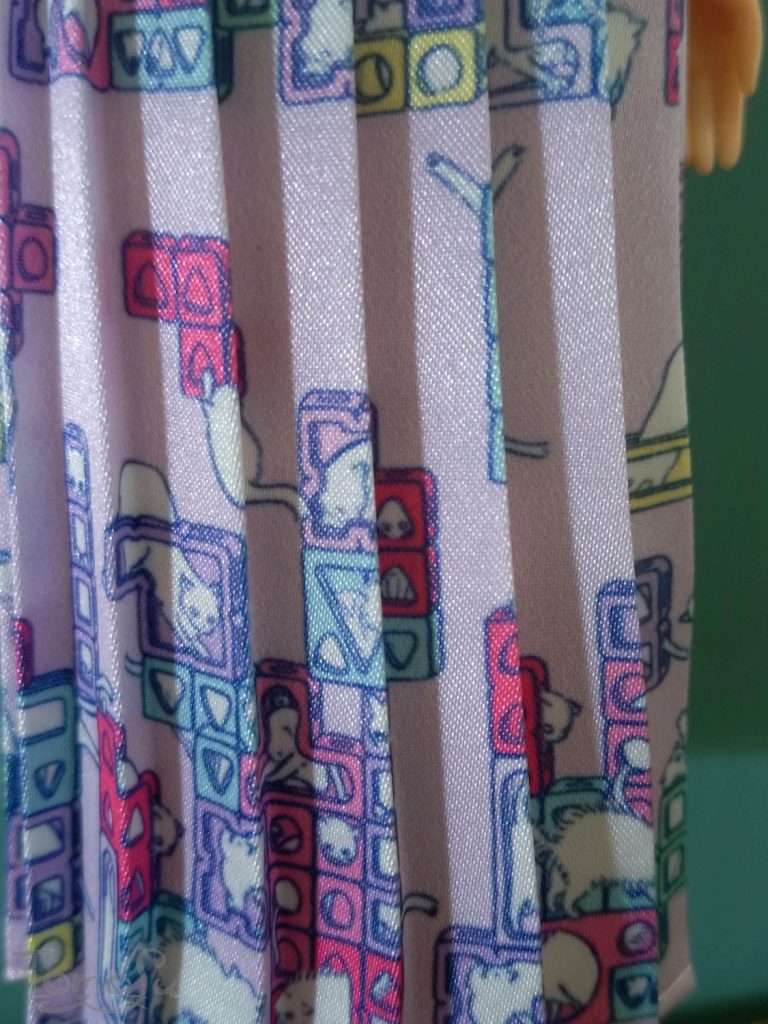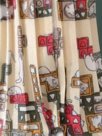色は、ネオン、金、銀、ゆめかわの4種類。ネオンだけブロックが透けているので猫の様子がより分かりやすいです。とはいえ熱心にプリーツを寄せたのであんまり見えませんが( ´艸`)こちらはスカート単品で1300円です。